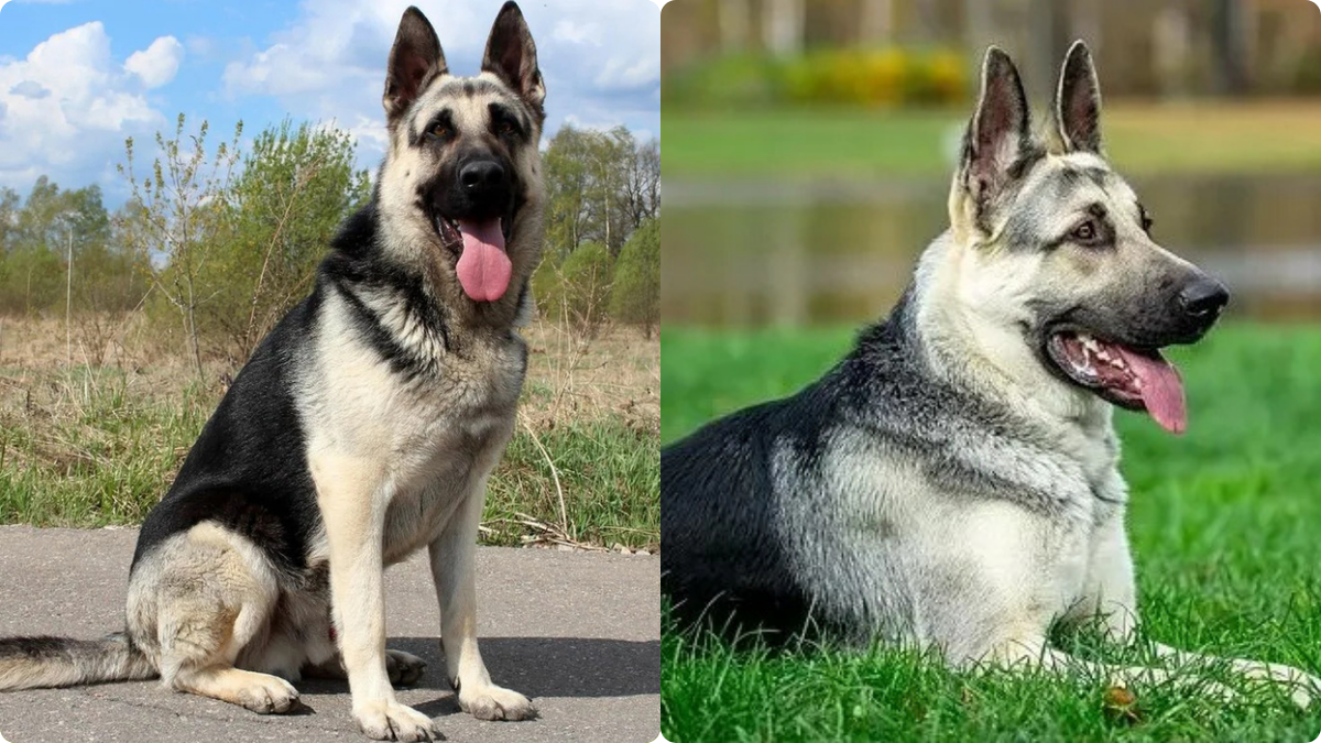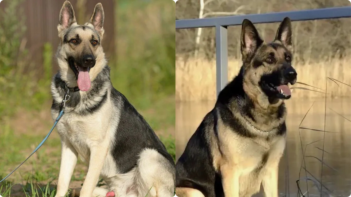 Когда впервые видишь настоящую восточноевропейскую овчарку рядом с немецкой, первая мысль — это два разных вида животных, хотя родство очевидно.