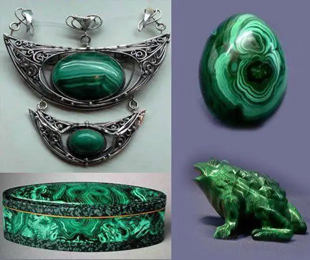 Несмотря на то, что малахит добывают не только на Урале, этот зеленый минерал с неповторимым узором считается «русским» камнем, потому что именно уральский малахит превосходит остальные по своему великолепию: «на поверхности, как бархат, а в изломе, как атлас». С Урала же пошла и общепринятая во всем мире техника обработки камня, называемая «русская мозаика».