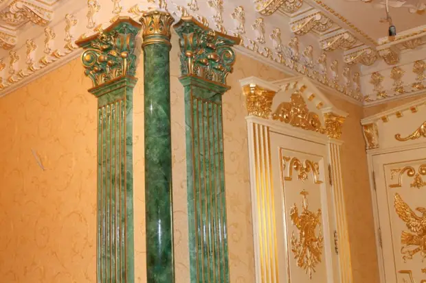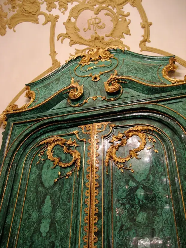 Двери в него были полностью облицованы малахитом. Благодаря искусно подобранному узору и тонкой шлифовке казалось что они выполнены из куска цельного минерала. Иностранцы стояли пораженные – в наше время такое удивление вызвали бы разве что двери из бриллианта.
