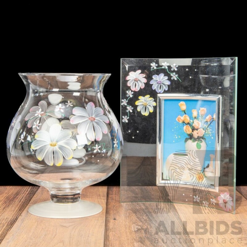 Ваза (или бокал для бренди) и рамка, комплект с ручной росписью. Maddigan.