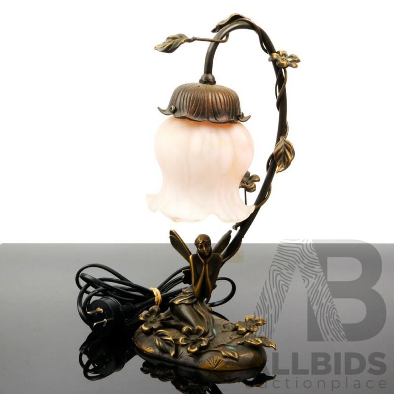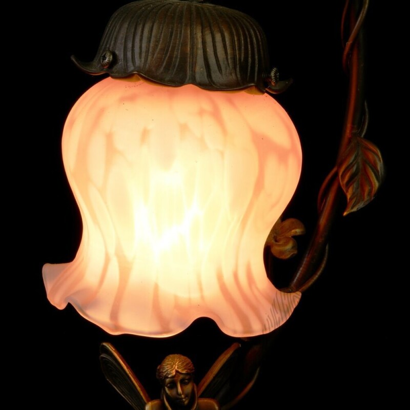 Настольная лампа 90-х гг. с абажуром из художественного стекла ручной работы.