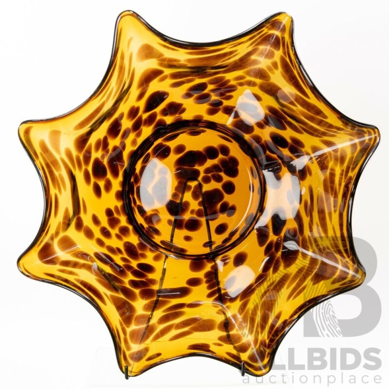 Блюдо на рифлённой подставке, янтарное художественное стекло. Впрочем, подставка (так в описании) больше похожа на красивую вазочку.