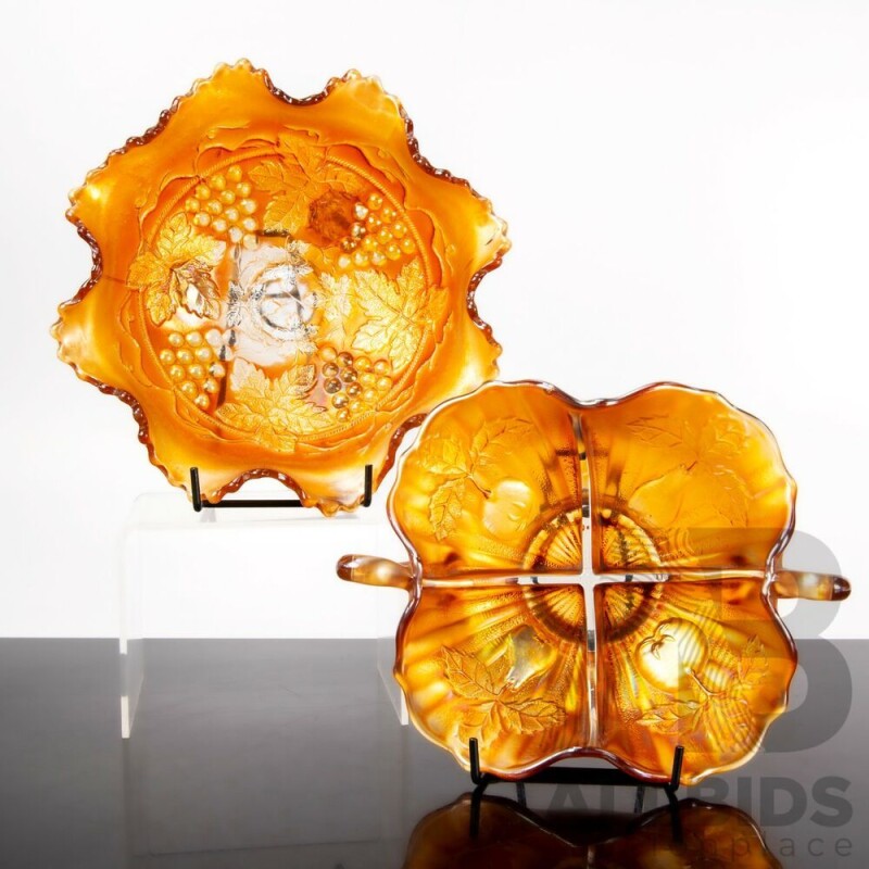 Блюдо с рифлёным краем карнавальное стекло, рисунок «маргаритки в Индиане».