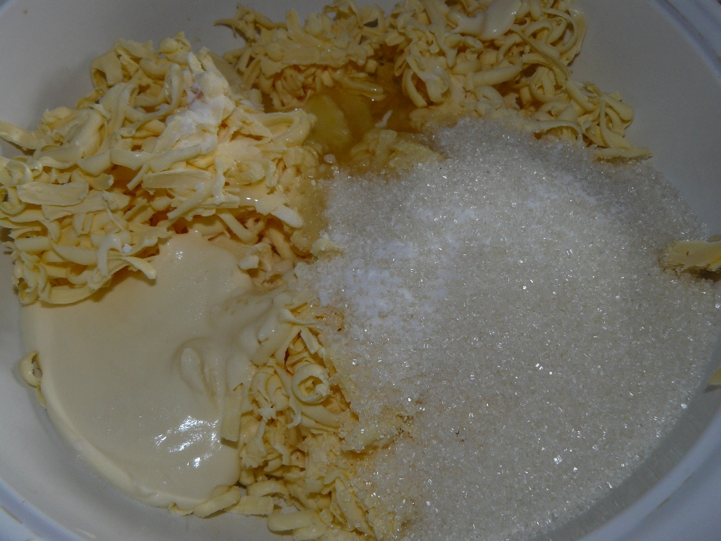 Масло предварительно размягчить или натереть на крупной терке. Из всех ингредиентов замесить тесто и положить минут на 30 в холодильник.
