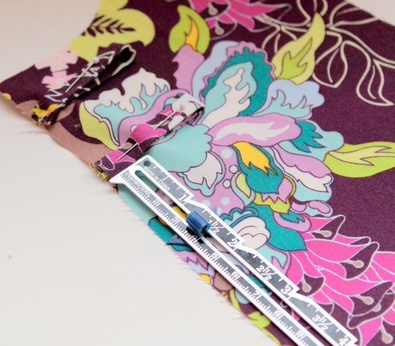 Сложите его пополам лицевой стороной внутрь. Прострочите по длинной стороне на расстоянии 3 мм от края.