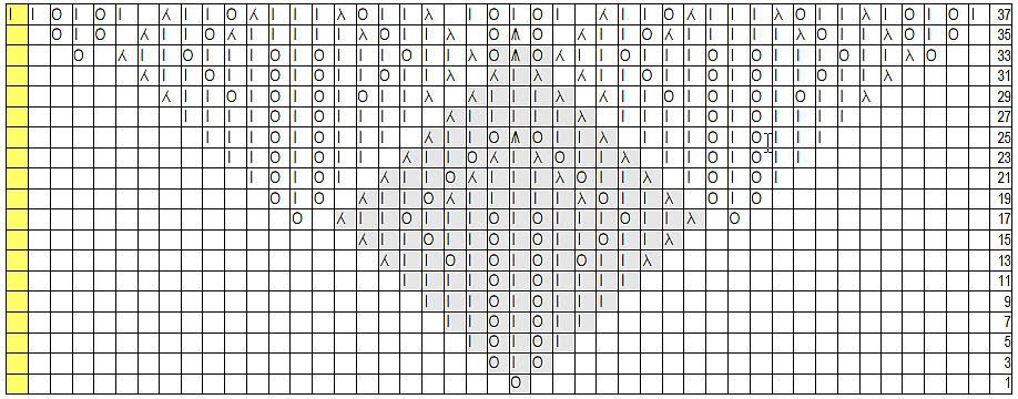4-й вариант И на мой взгляд, самая удачная схема: Схема Гейл от 2sticks (страничка автора схемы). Дано количество петель в рядах, схема компактная и понятная.