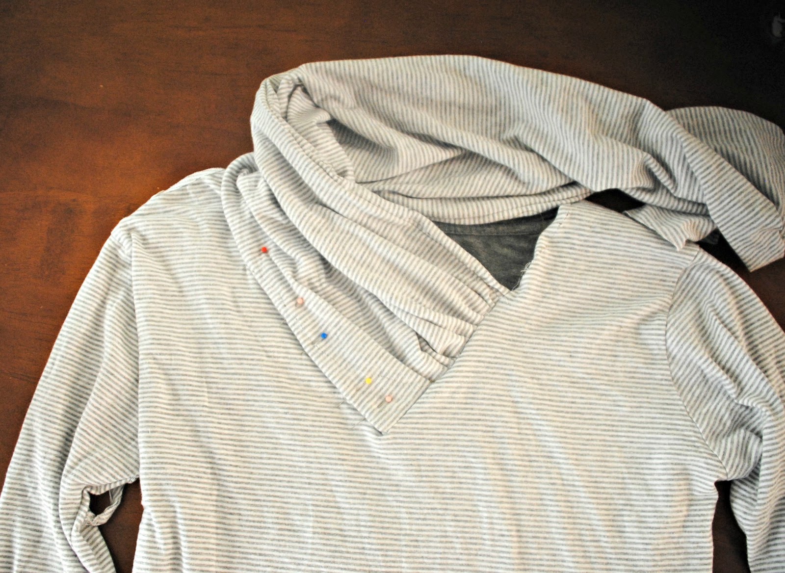 http://www.trashtocouture.com/2012/10/diy-v-neck-into-gathered-cowl-collar.html