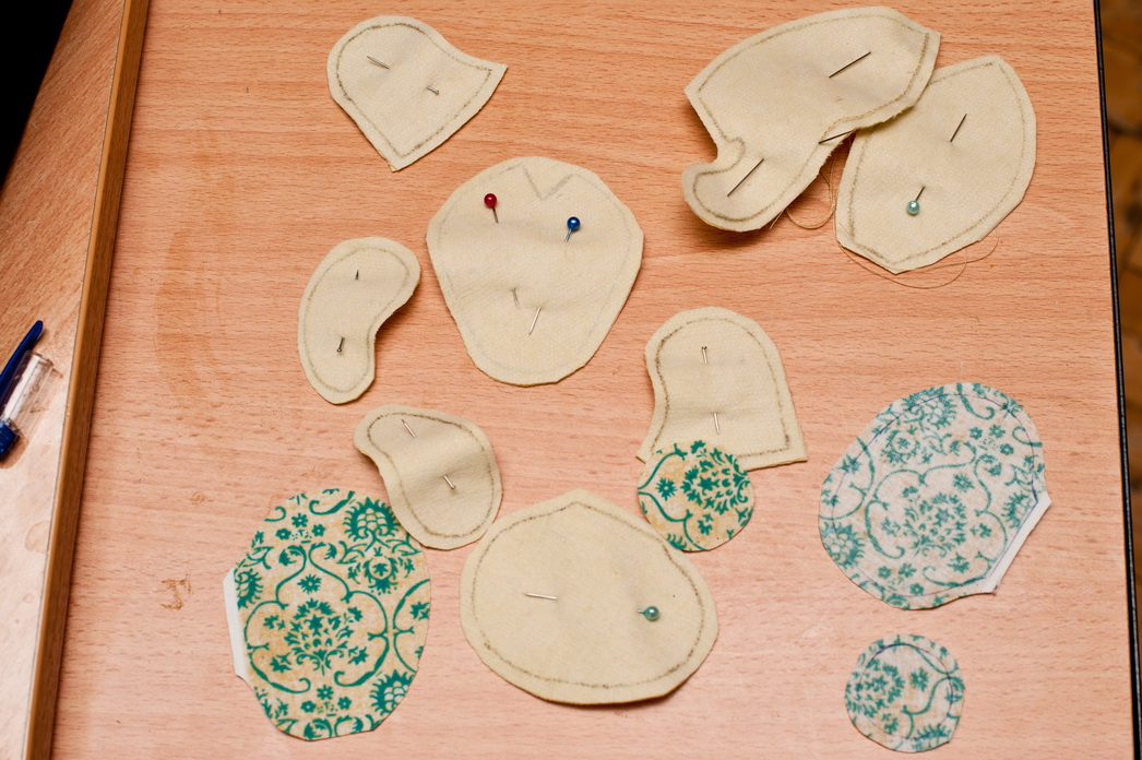 После того, как детальки набиты, аккуратно зашиваем их потайным швом.