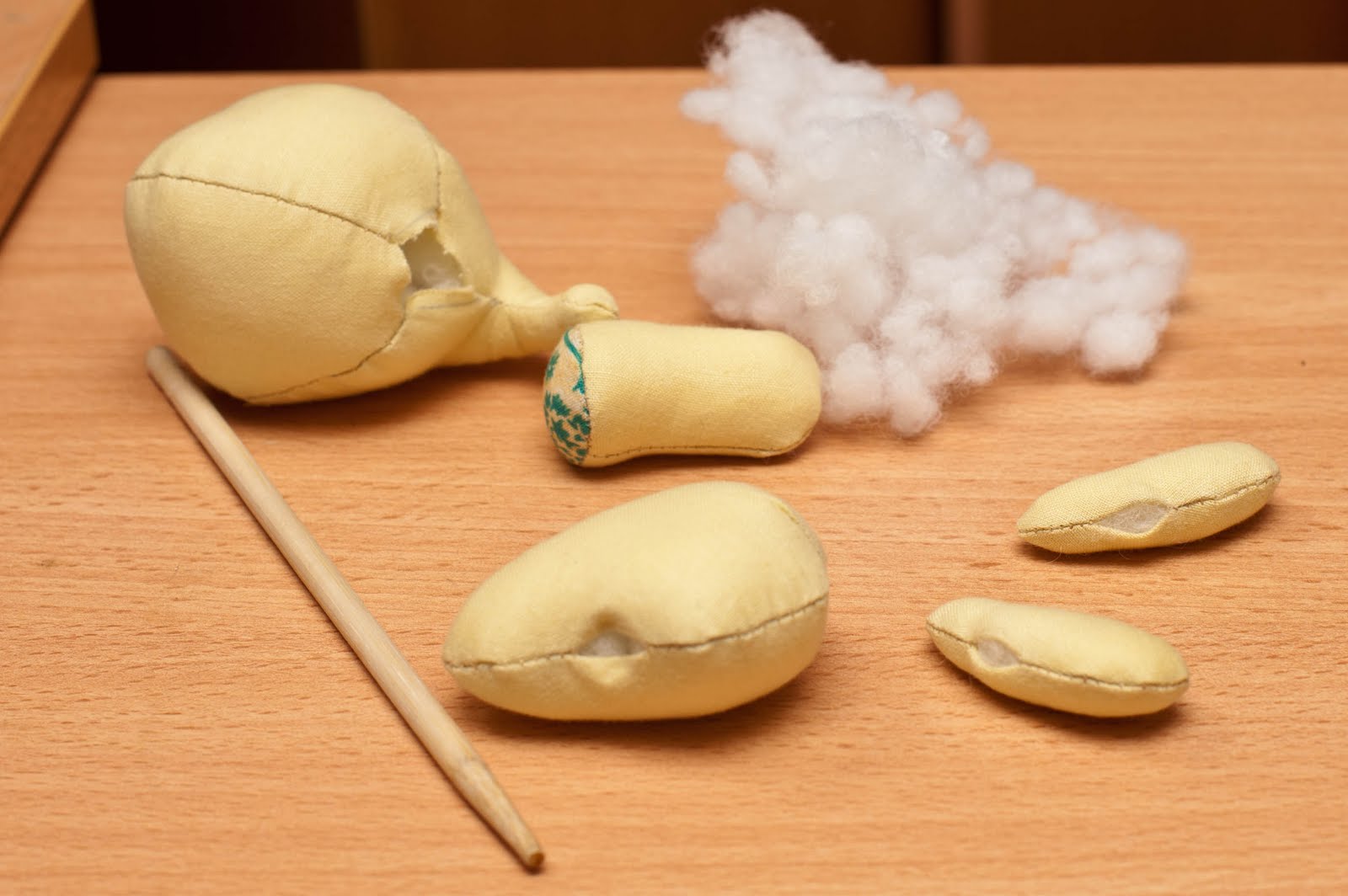 Как видите, при набивке так же использую палочку. Все детальки набиваем ПЛОТНО!!!! особенно голову. Можно в тельце добавить гранулят ( у меня его не было) будет лучше сидеть.
