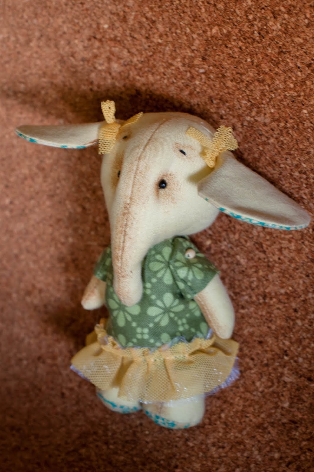 Теперь все это аккуратно прошиваем потайным швом.Я прошивала только складочки, само платье к тельцу не пришивала, так как еще не успела затонировать нашу слоняшку. Вы можете и сразу пришить, если этот этап уже пройден или вам не нужен.