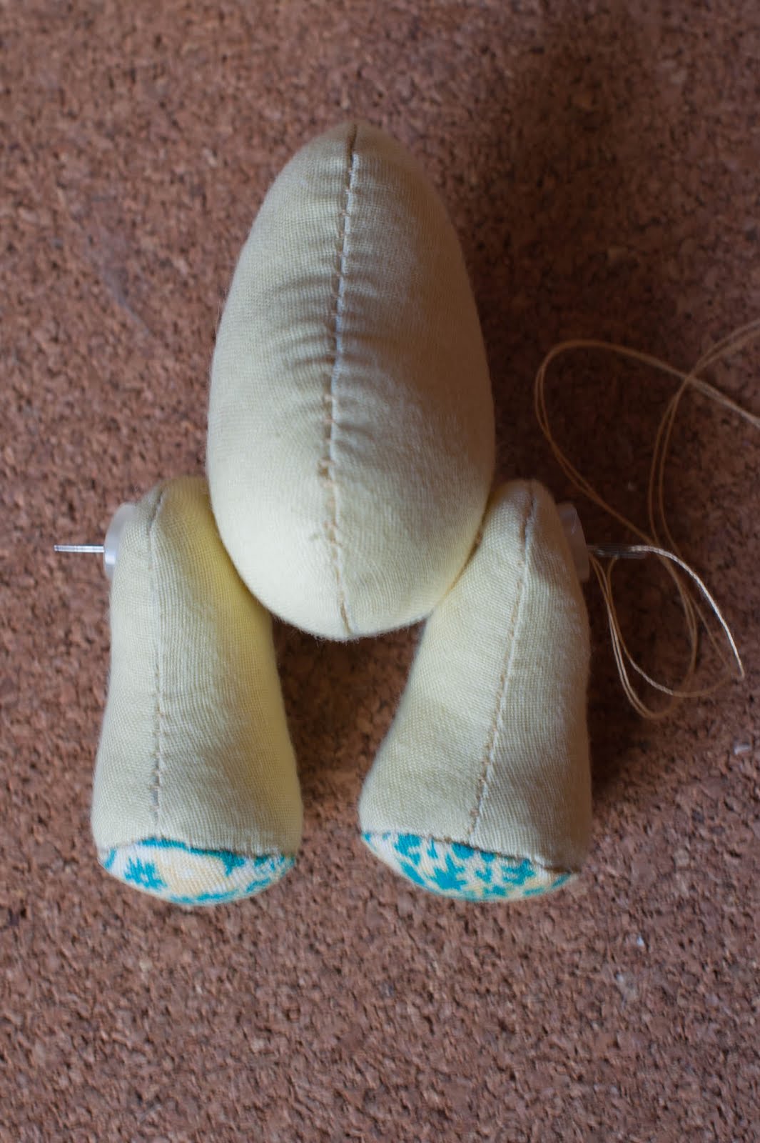 Дальше прострачиваем все наши детальки либо на машинке, либо как я ручками, шов за иголку. Голова- прошиваем передних шов с носиком, дальше прикалываем два клинышка и аккуратно сшиваем.