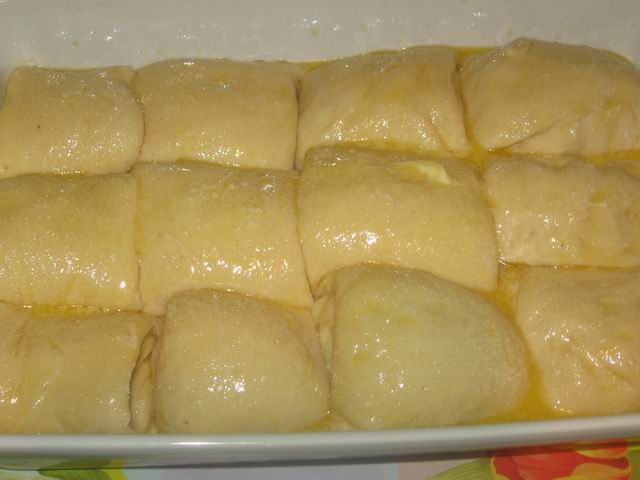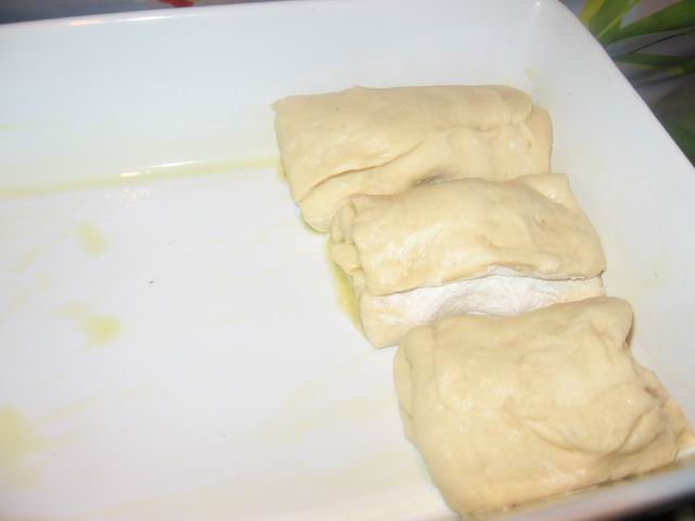 Укладываем в форму для запекания. Лучше укладывать швом вниз.