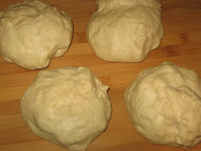 Замешиваем мягкое тесто. Много муки сыпать не надо. Как только тесто начнёт отлипать от стенок кастрюли, прекращаем его меситью