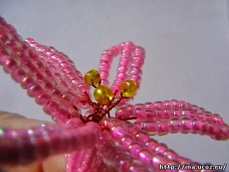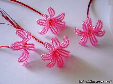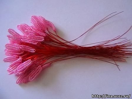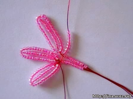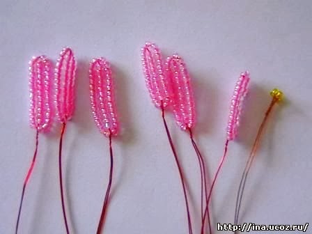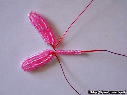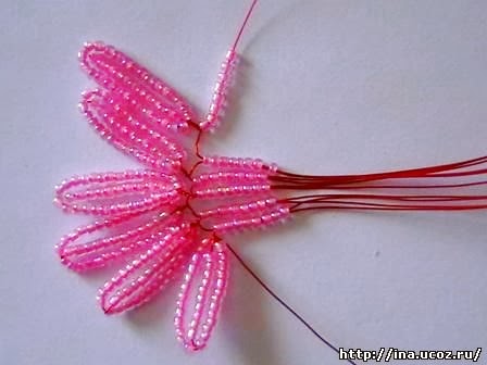 Опять набираем на свободный конец проволоки уже второго лепестка ещё 8 бисеринок