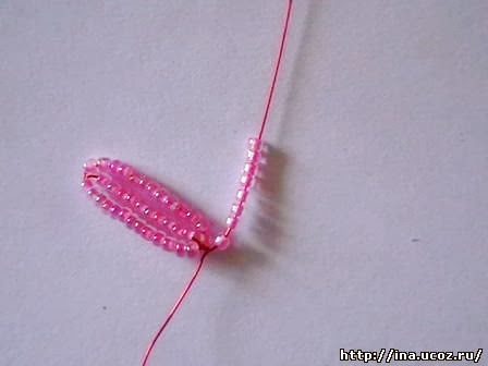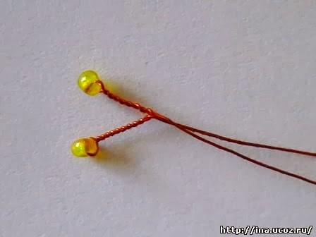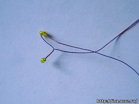 Набираем вторую бисеринку и проделываем с ней то-же что и с первой