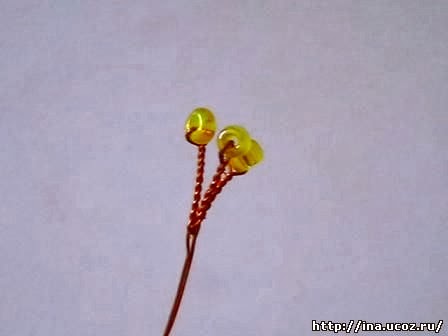 Складываем проволоку пополам и скручиваем под бисеринкой проволку , около 1 см, может чуть меньше.