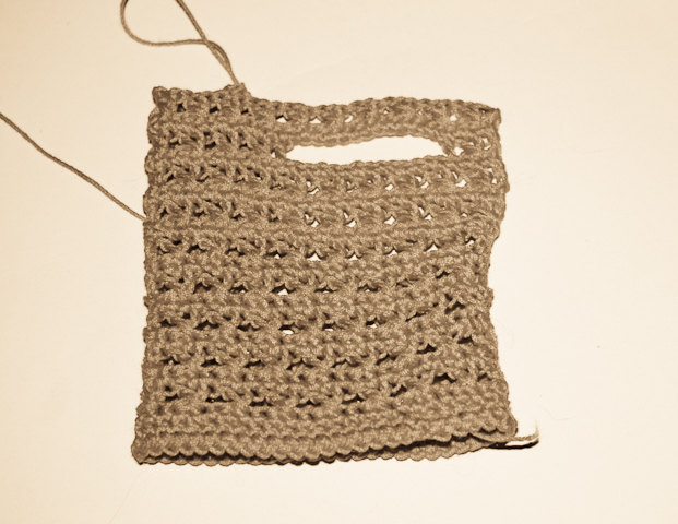 Провязываем снова ряд из ст. б.н., ряд из перекрещенных ст. с н.