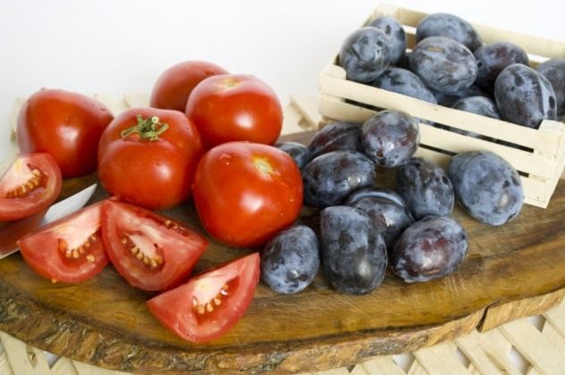 /www.botanichka.ru/wp-content/uploads/2015/09/tkemali_5-320x213.jpg" target="_blank">https://www.botanichka.ru/wp-content/uploads/2015/09/tkemali_5-320x213.jpg 320w, https://www.botanichka.ru/wp-content/uploads/2015/09/tkemali_5-696x463.jpg 696w, https://www.botanichka.ru/wp-content/uploads/2015/09/tkemali_5-632x420.jpg 632w, https://www.botanichka.ru/wp-content/uploads/2015/09/tkemali_5.jpg 1024w" title="Томаты и сливы варим 30 минут при медленном кипении" width="640" />Косточки из слив доставать не нужно, а вот помидоры режем на четвертинки. Кладём сливы и помидоры в глубокую кастрюлю, плотно закрываем крышкой. Готовим при медленном кипении 30 минут (в самом начале можно добавить немного воды).