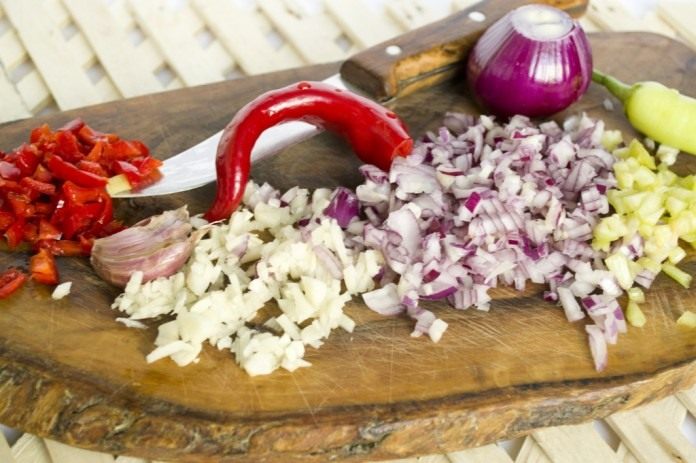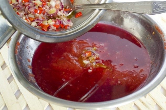 /www.botanichka.ru/wp-content/uploads/2015/09/tkemali_6-320x213.jpg" target="_blank">https://www.botanichka.ru/wp-content/uploads/2015/09/tkemali_6-320x213.jpg 320w, https://www.botanichka.ru/wp-content/uploads/2015/09/tkemali_6-696x463.jpg 696w, https://www.botanichka.ru/wp-content/uploads/2015/09/tkemali_6-632x420.jpg 632w, https://www.botanichka.ru/wp-content/uploads/2015/09/tkemali_6.jpg 1024w" title="Мелко нарезаем овощи для соуса и обжариваем" width="640" />Пока помидоры и сливы томятся, нарезаем как можно мельче все овощные добавки к соусу: чеснок, лук-шалот, красный и зелёный перец чили. Обжариваем мелкие кусочки овощей в оливковом масле, готовим недолго, достаточно просто слегка припустить их в масле.