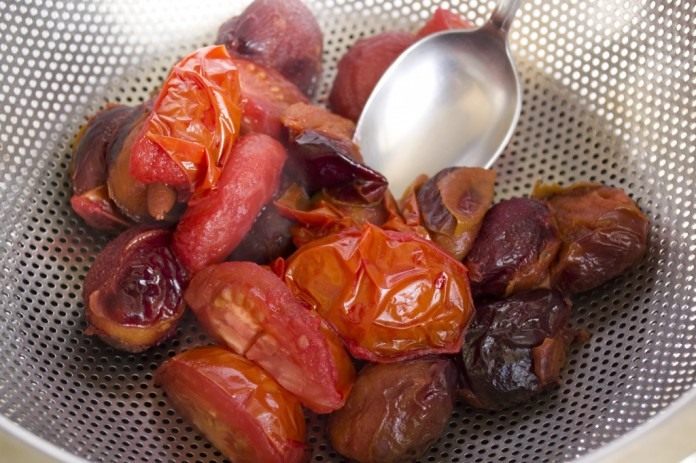 /www.botanichka.ru/wp-content/uploads/2015/09/tkemali_7-320x213.jpg" target="_blank">https://www.botanichka.ru/wp-content/uploads/2015/09/tkemali_7-320x213.jpg 320w, https://www.botanichka.ru/wp-content/uploads/2015/09/tkemali_7-696x463.jpg 696w, https://www.botanichka.ru/wp-content/uploads/2015/09/tkemali_7-632x420.jpg 632w, https://www.botanichka.ru/wp-content/uploads/2015/09/tkemali_7.jpg 1024w" title="Отваренный томаты и сливы протираем через сито" width="640" />Когда сливы и помидоры хорошо разварятся, откидываем их на сито или дуршлаг, протираем массу столовой ложкой. Пюре получится густым, а косточки и кожура останутся в дуршлаге.