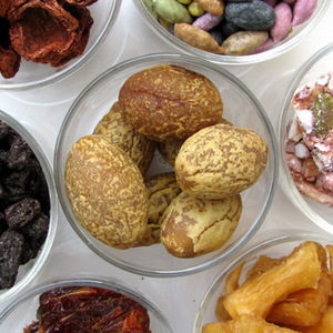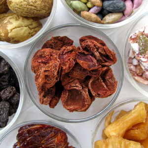 Вы наверняка знаете, что одной из «фишек» восточной кухни является умение маскировать исходные продукты, из которых приготовлено кушанье. То есть сделать так, чтобы человек их угощает, ни за что не догадался, чем ее угощают. Среди тайваньских чайных сладостей таких«обманок» достаточно много. Вяленые грибы Шиитаке имитируют мясо, глазированные семена приятно Вас удивят разнообразием вкусов.