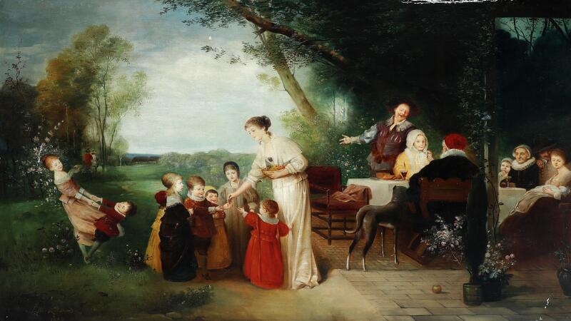 Дочери художника в гирлянде из фруктов кисти Фридриха Августа фон Каульбаха, 1904,