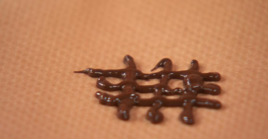 Растопим шоколад на водяной бане. Очищаем манго от кожуры. Удаляем косточку. Нарезаем мякоть кубиком. Заполняем кондитерский мешок растопленным шоколадом. Выдавливаем шоколад в виде решеток на пергамент. Ставим в холодильник для застывания.