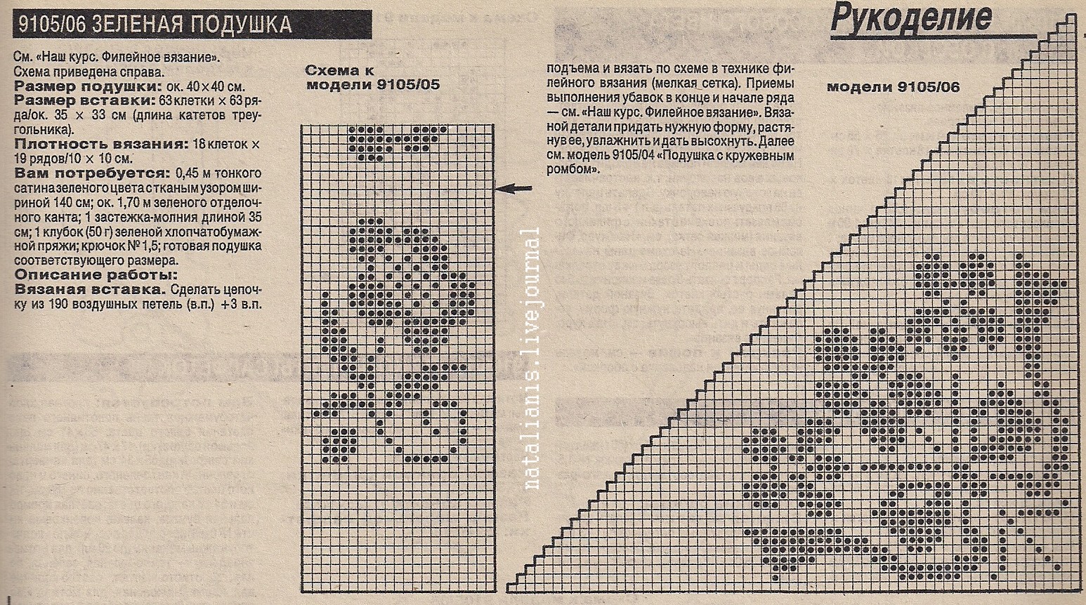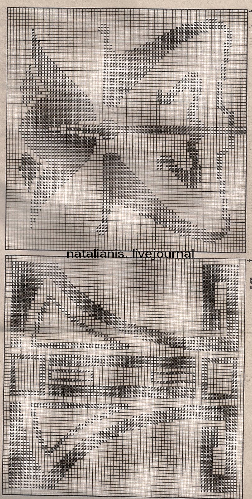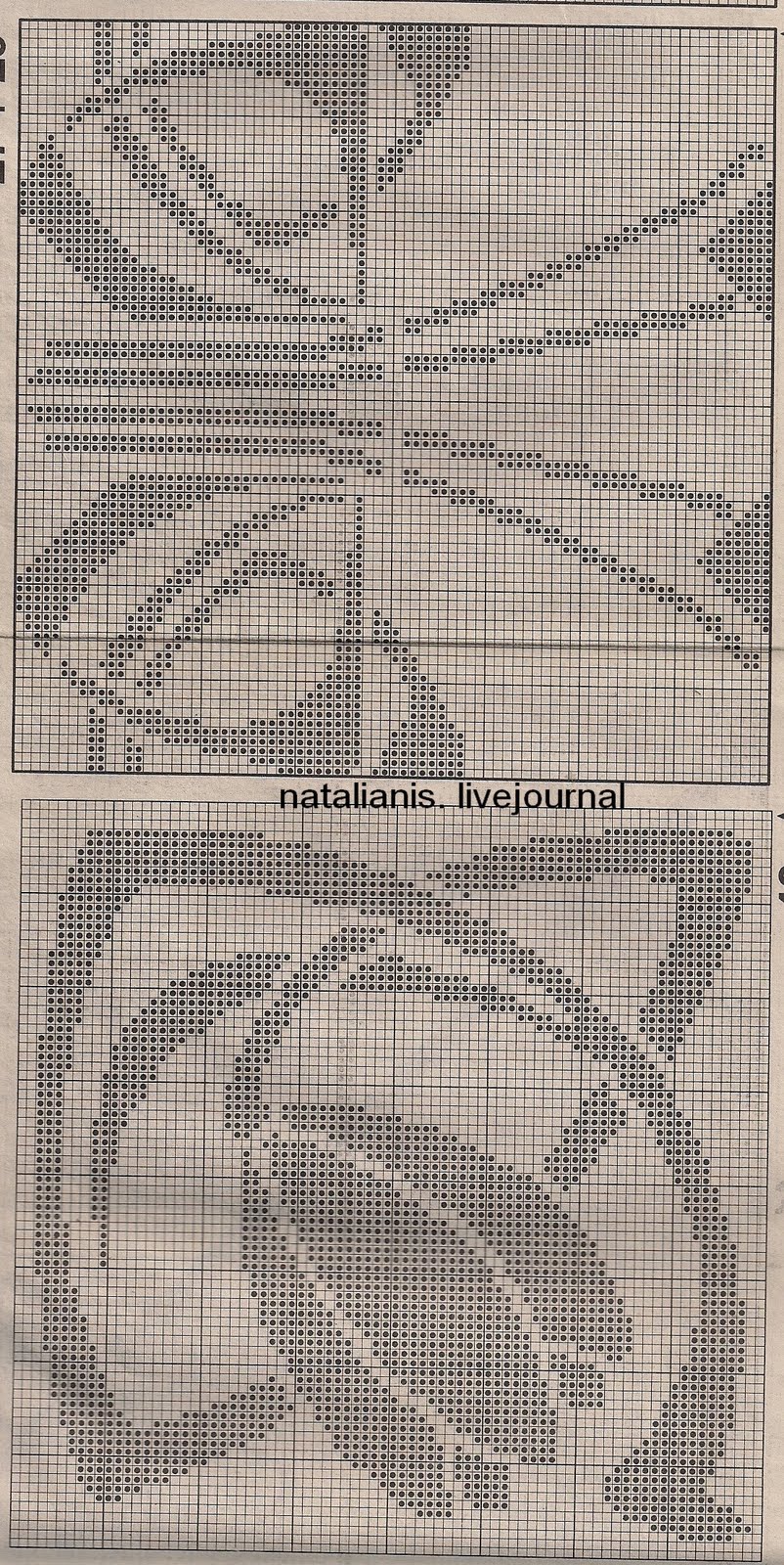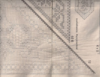 Филейное вязание — имитация филейно-гипюрной вышивки (филейных кружев), которая выполнялась на специально сплетенной сетке. Простое по исполнению, но эффектное вязаное кружево.[показать][261x320]