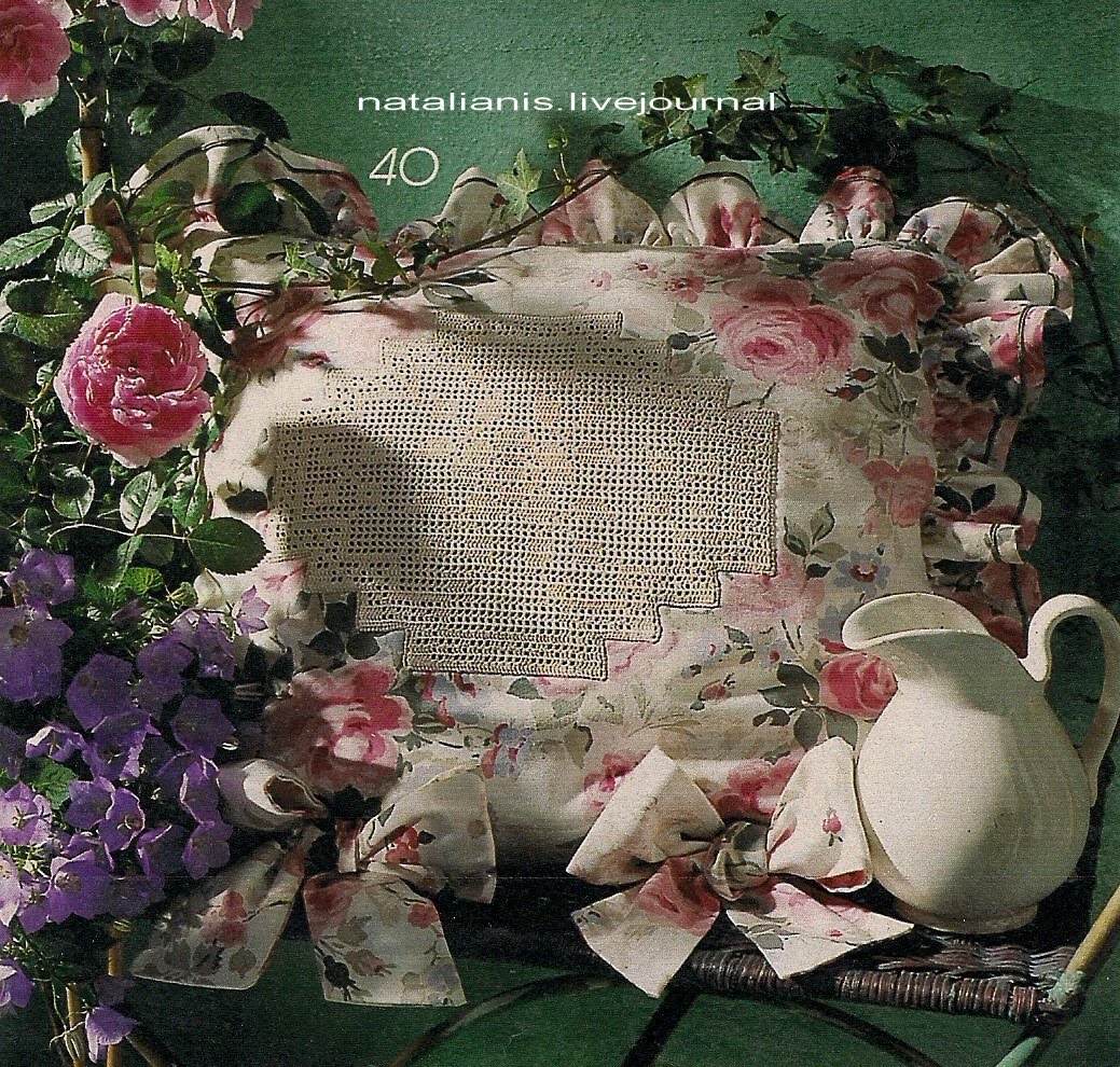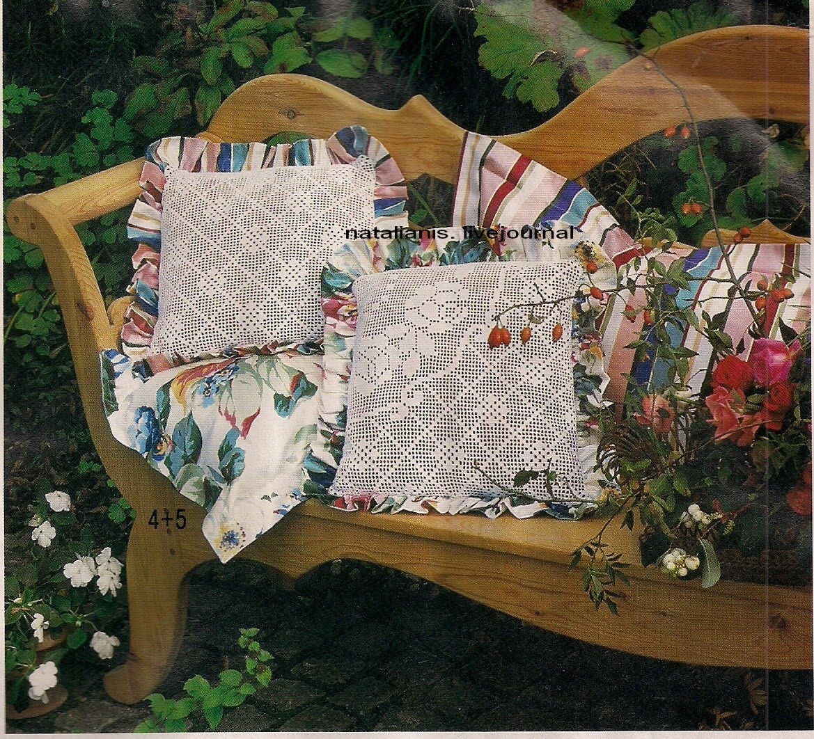 из пряжи плетенку. Когда верх подушки готов его нашивают на ткань.
