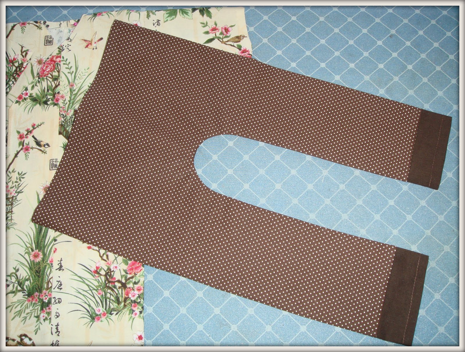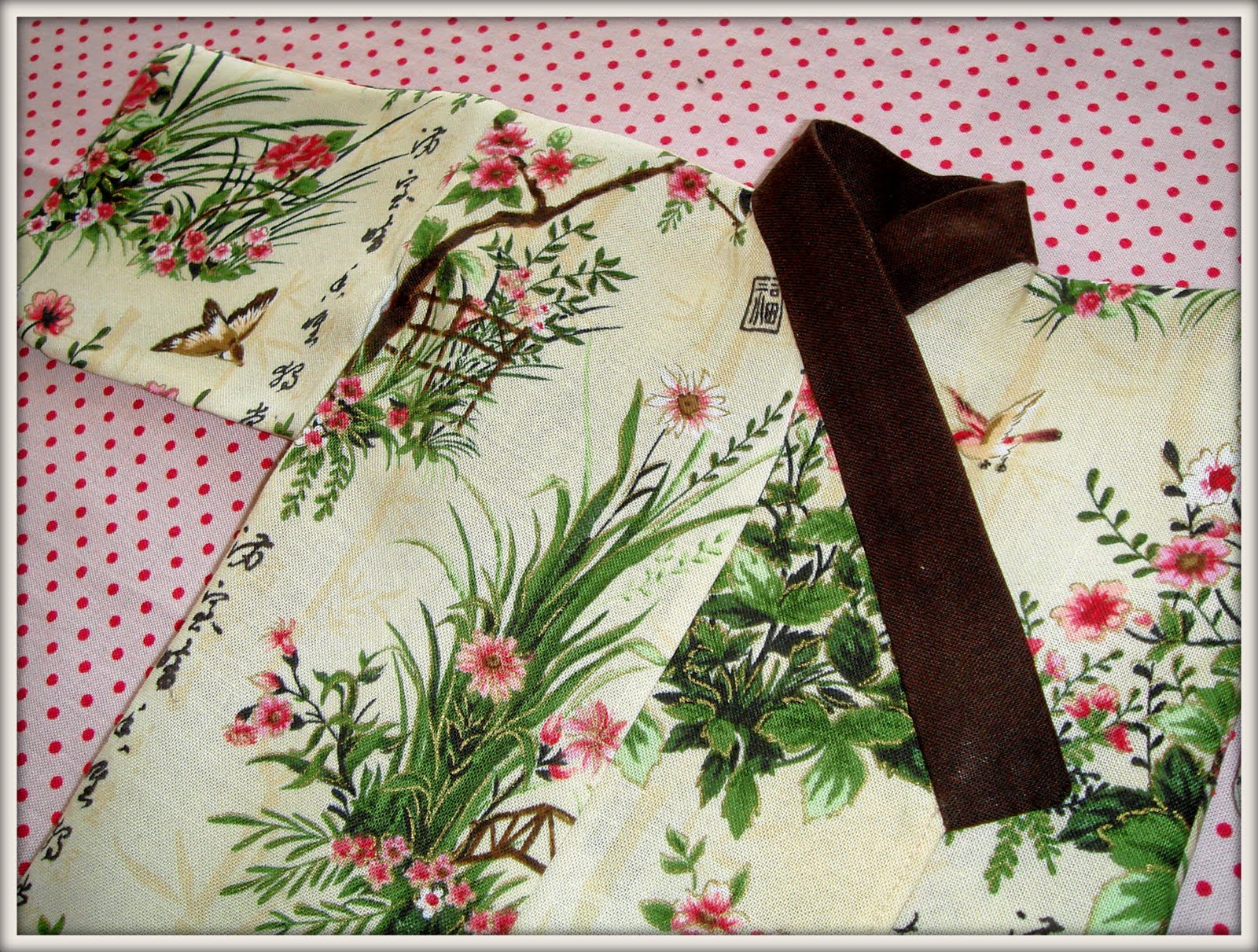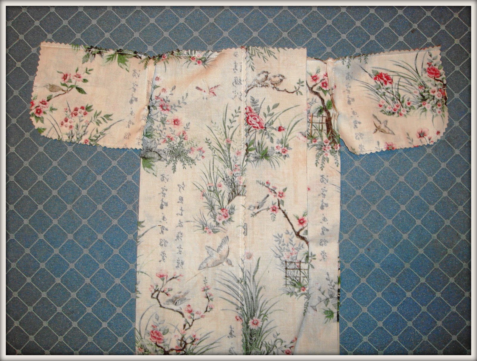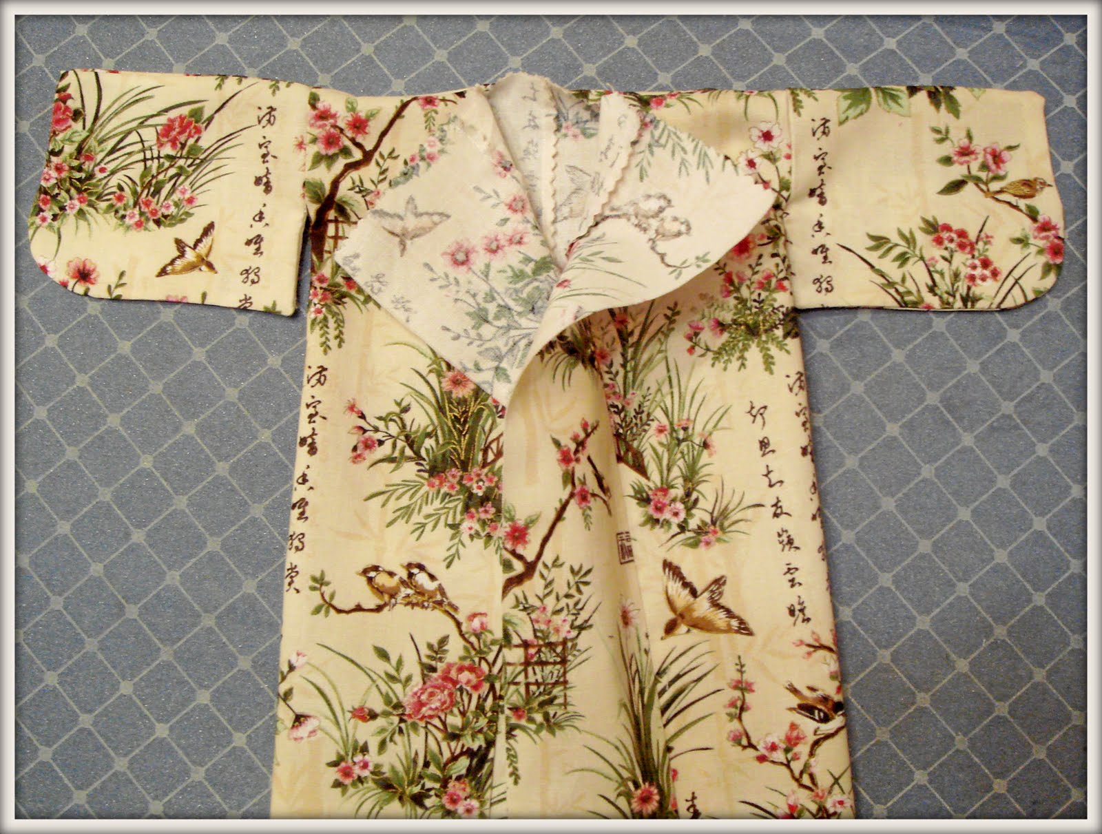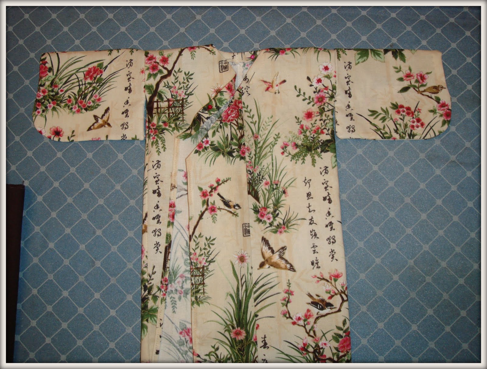 8. Обработала края и низ кимоно - подогнула и прошила (кроме места для воротника)