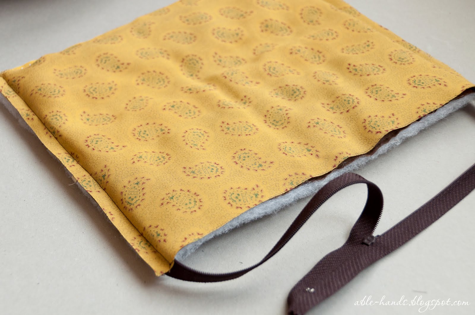 Выворачиваем, чтобы изнаночная сторона осталась внутри. Проглаживаем швы и прокладываем отделочную строчку, чтобы закрепить молнию.