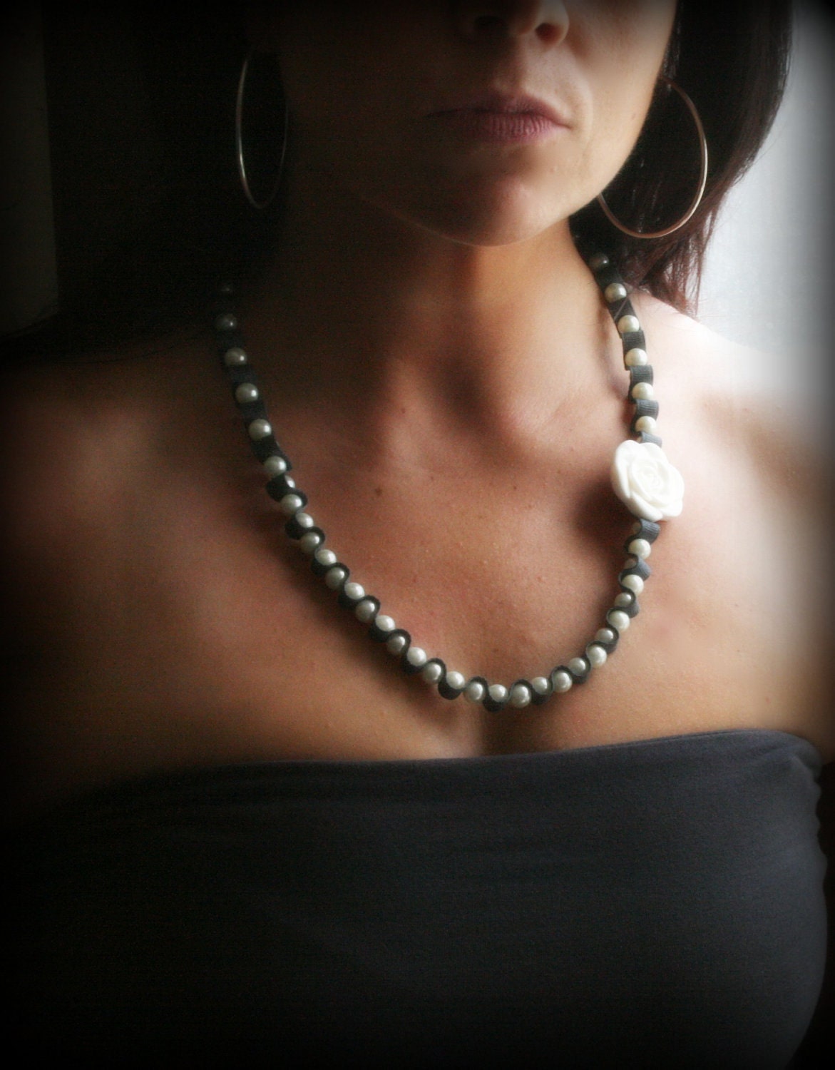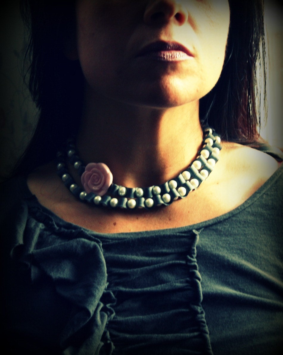 [570x]Tillie Rose and Pearl Ribbon Necklace in Flannel Gray and Petal Pink