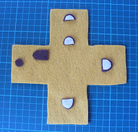 Затем берем фетр и вырезаем его по выкройке, чуть-чуть с припусками на швы