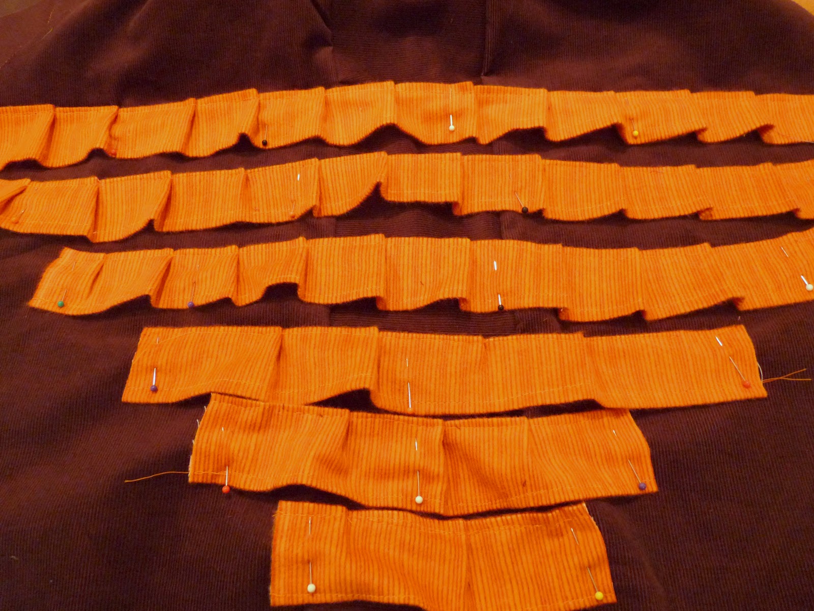 12. Pin ваши ряды складок в месте на одной из своих фигур вельвет. Стежка на месте.