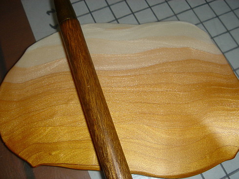 [показать] 5- Раскатываем, разравнивая получившийся полосатый коврик