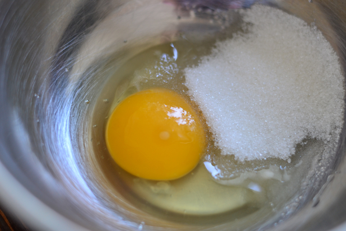 Тем временем можно приготовить крем.Яйцо взбиваем с сахаром.
