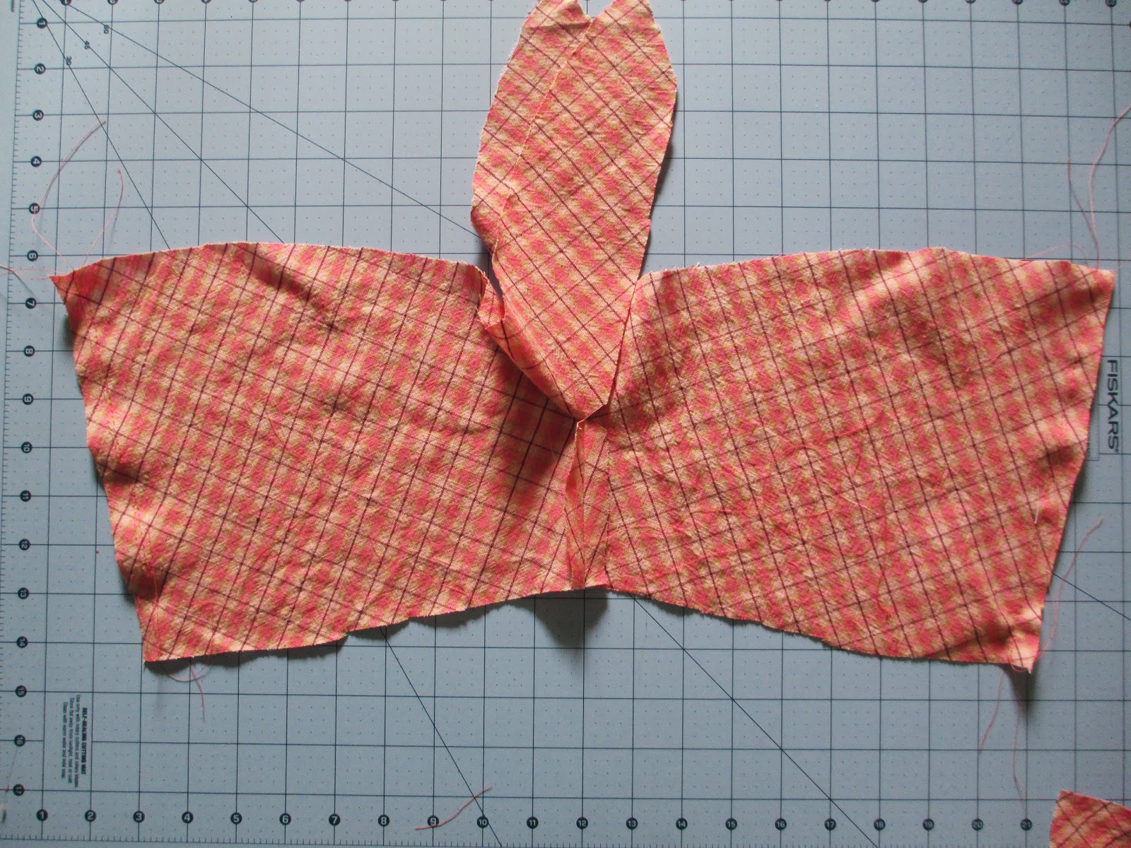 (вырезать по диагонали) отходы ткани, так что я просто вырезала