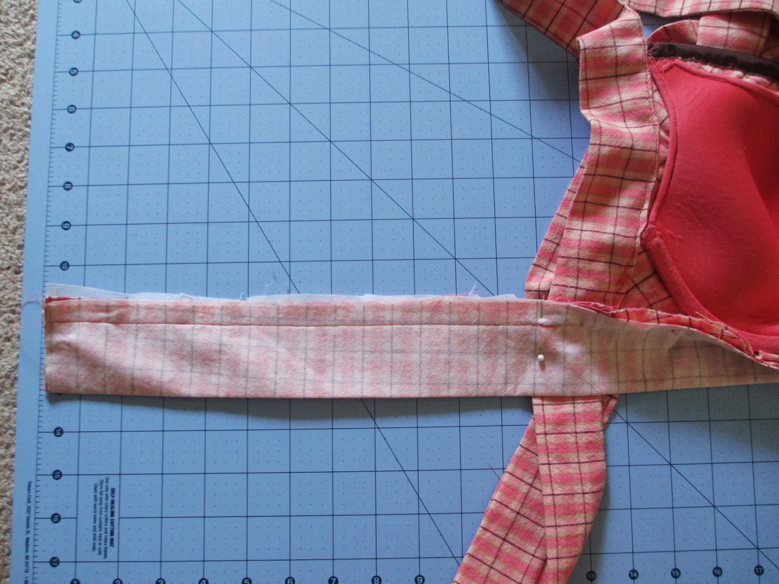 | Готово ремни, поднимая шить линии, где остановились в верхней части лифа (PIN) |
