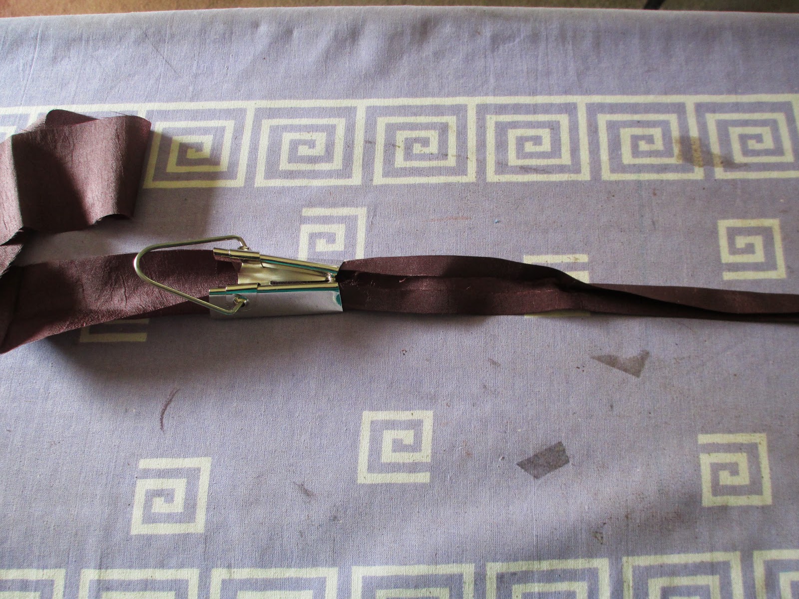 8. Fold ремень вдоль пополам, с правой стороны вместе. Нажмите.