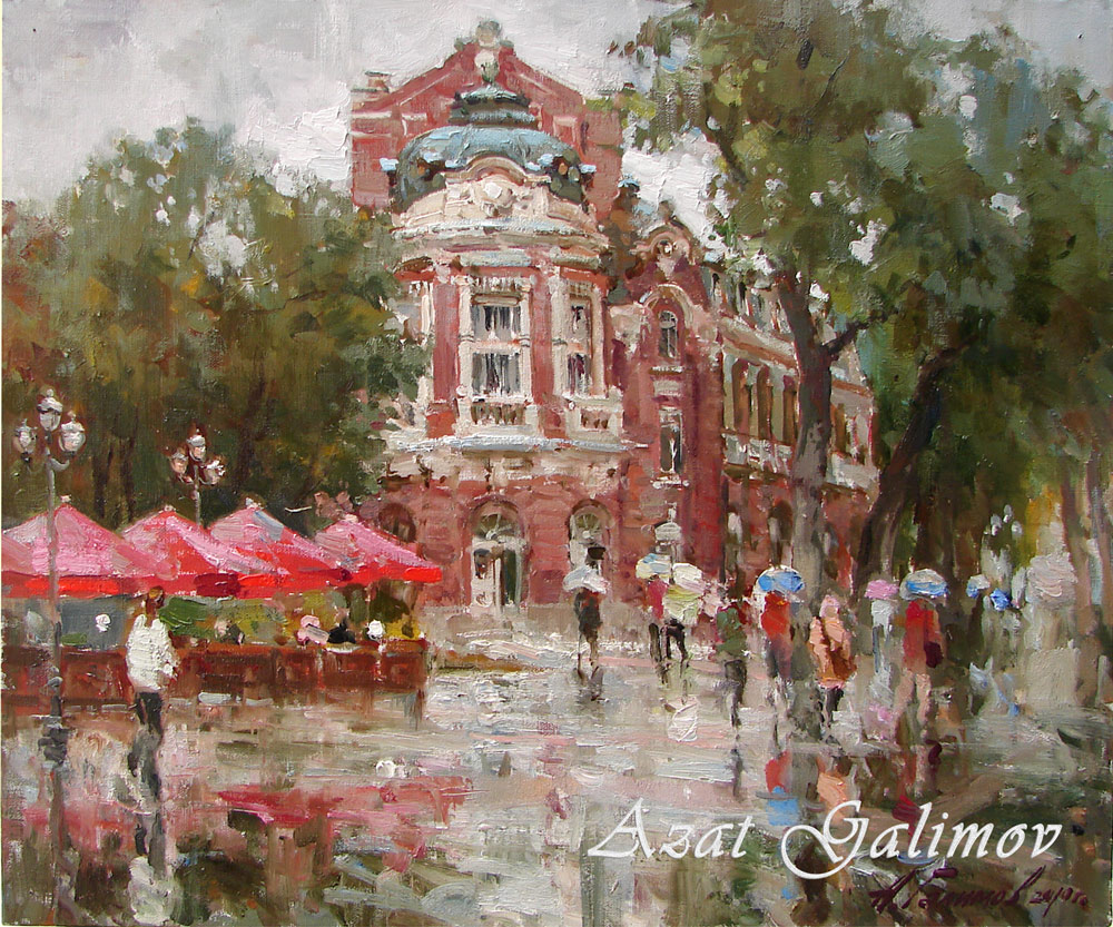 "Художник много и активно работает, главным его пристрастием является пейзаж. Именно в нём особенно ярко проявляется талант чувствовать и передавать на полотне все ноты гармонии, дающие нам ощущение прекрасного. Написанные с большой любовью портреты нашего города, под его кистью наполняются необычайной лёгкостью, поэтичностью и вызывают чувство искреннего восхищения."