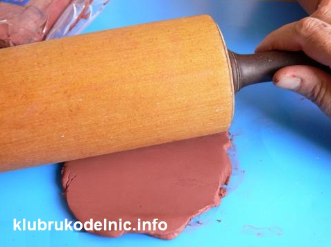 керамической глины, скатаем его в шарик и раскатаем его на разделочной доске скалкой в толстый кружок.