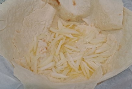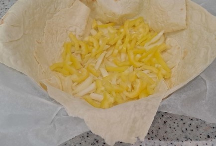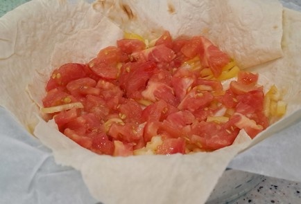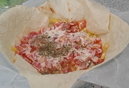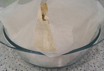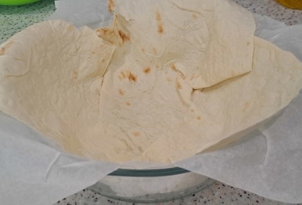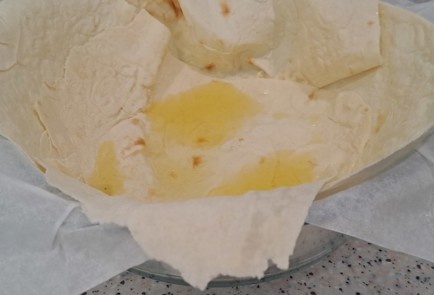 2.Форму для запекания выстелить пергаментом и на пергамент распределить лаваш.