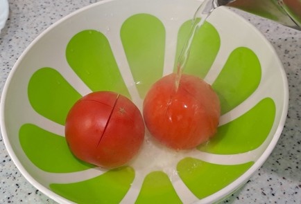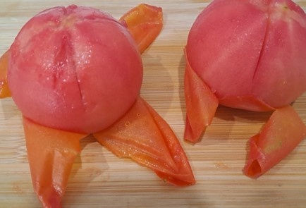 9.Через 1 минуту помидоры выложить на доску и очистить от кожуры.