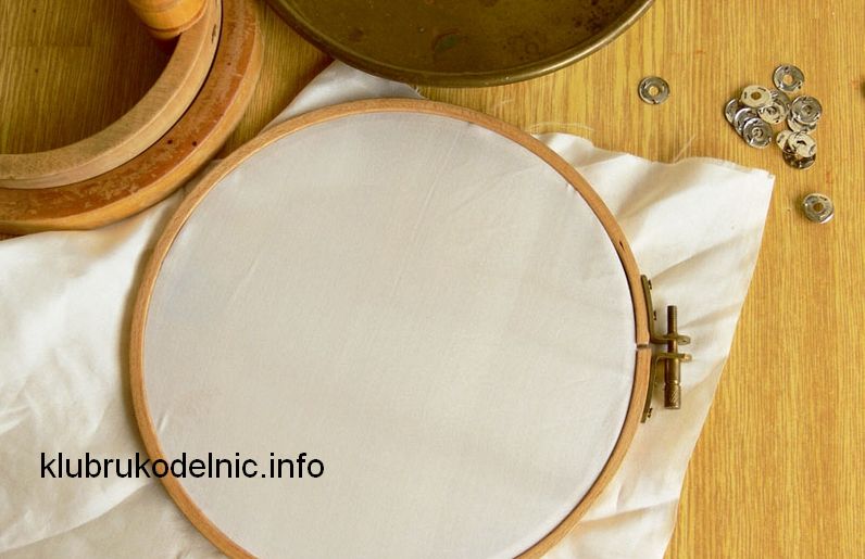 2. Если у вас не найдется рамки фиксированной или раздвижной, можете шелк натянуть на пяльцы или тарелку. В этом случае шелк свяжется с обратной стороны. Однако рисунок придется наносить по частям, а шелк при работе передвигать.