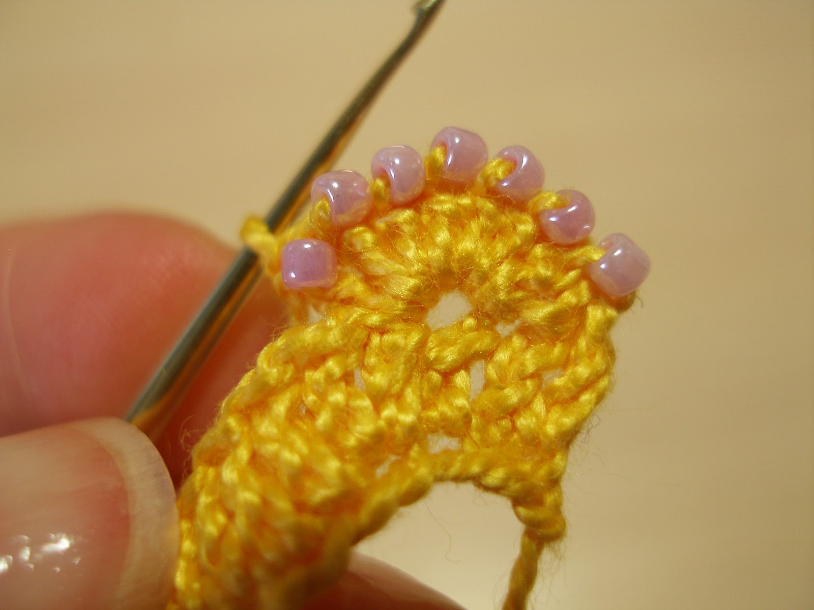 Начну рассказ с бисера. В интернете я видела много способов ввязывания бисера в полотно. Там и нитки перекручивались, и по несколько крючков использовалось, но эти варианты меня не устроили, поэтому я придумала адаптировала под себя один наиболее удобный способ.