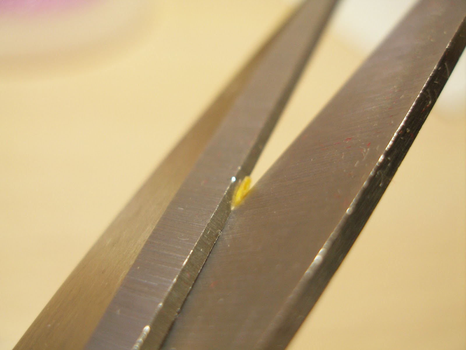 Как вы поняли, мы имитируем иголку, чтобы нанизать бисер:))) Но нить получилась не острой на конце, поэтому мы делаем косой срез ножницами.