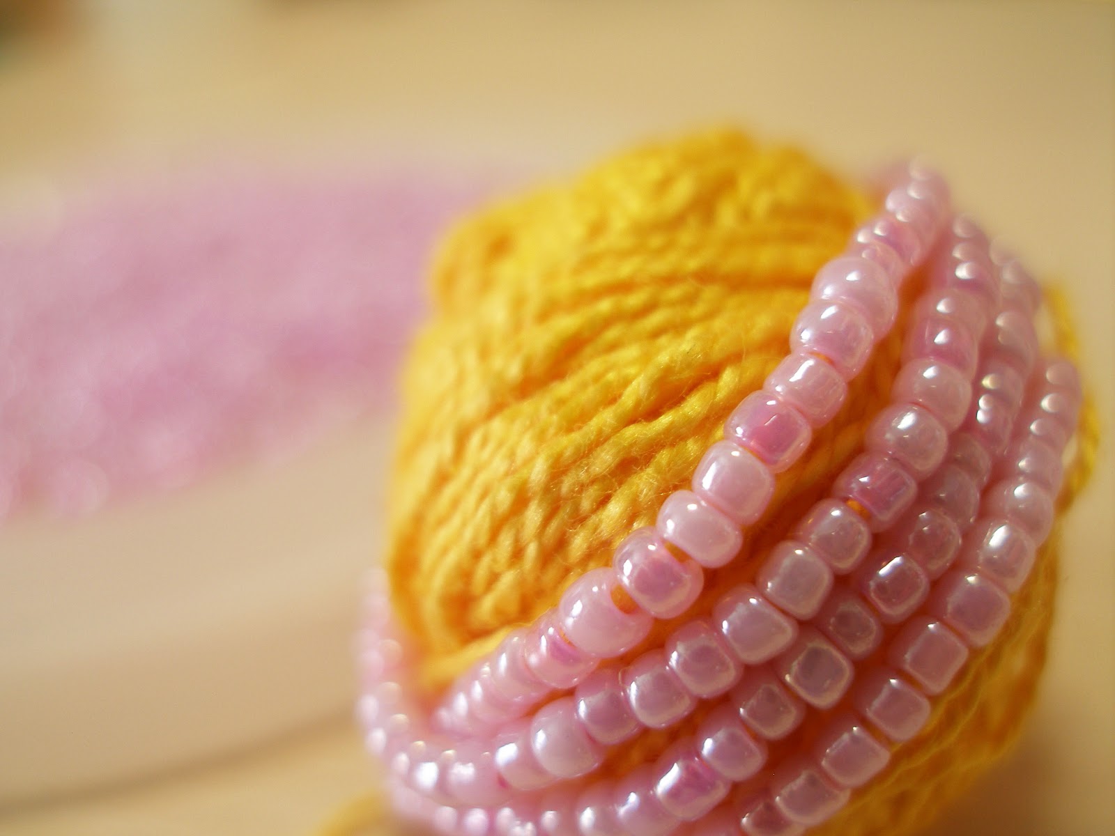 Я не высчитываю, сколько именно бисеринок мне нужно по рисунку, поэтому нанизываю больше. Пусть лучше останется, т.к. в процессе добавить бисер довольно сложно. Вот такой клубочек у меня получился.