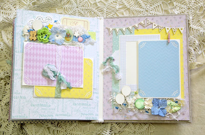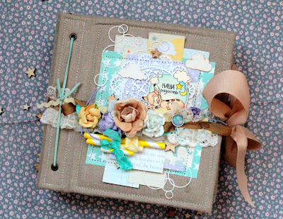 ScrapBerry's коллекция Sweet Dreams. Оформила альбом с помощью вырубки, вырезанных из бумаги картинок, брадс, пуговичек,