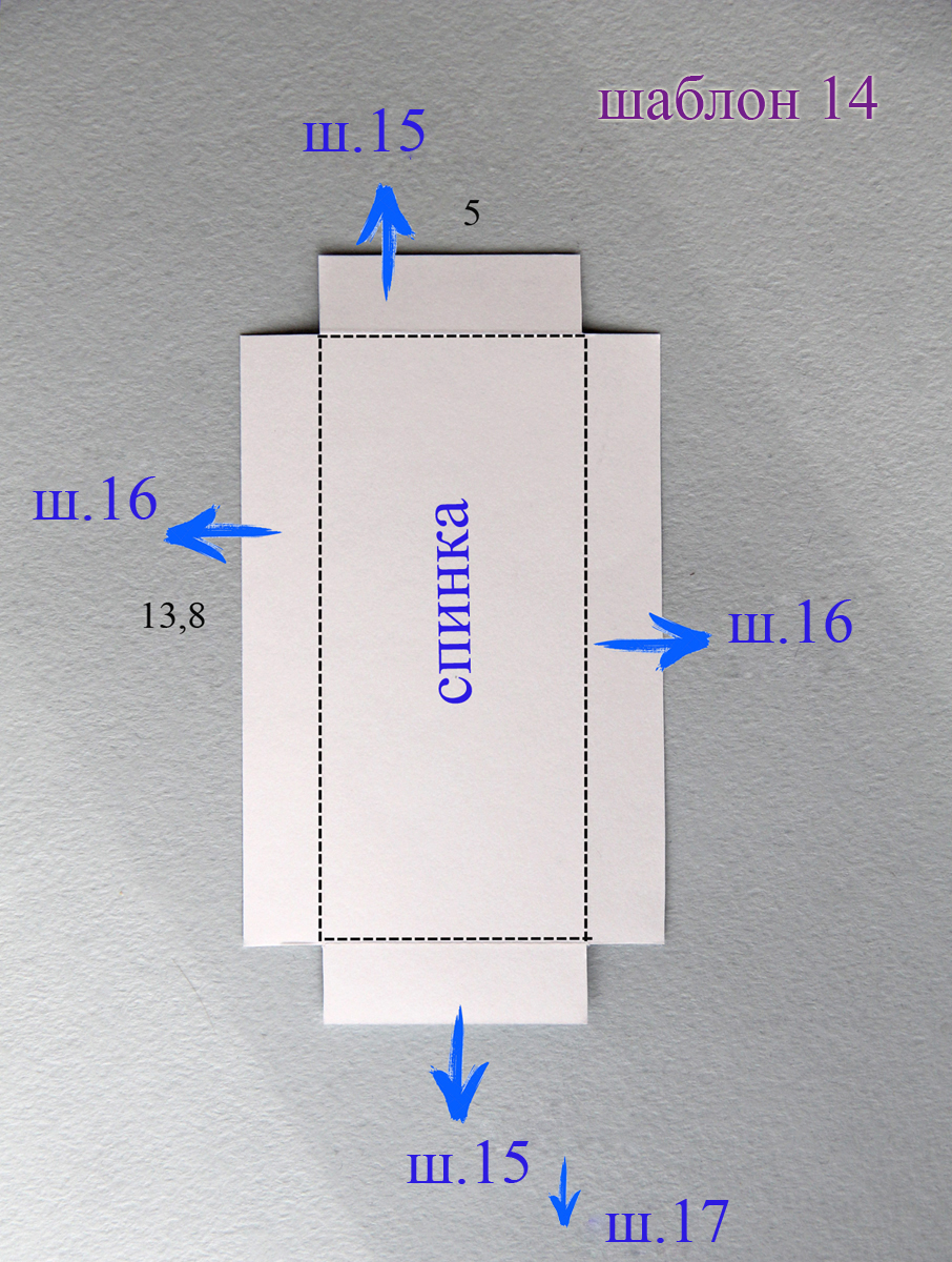 Он сделан по принципу стандартной коробочки по шаблону 1, только без крышки и с увеличенными размерами.