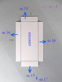 Для плотности полочки делаем еще одну заготовочку - она подклеивается внутрь шаблона 4. Язычки выходят наружу.